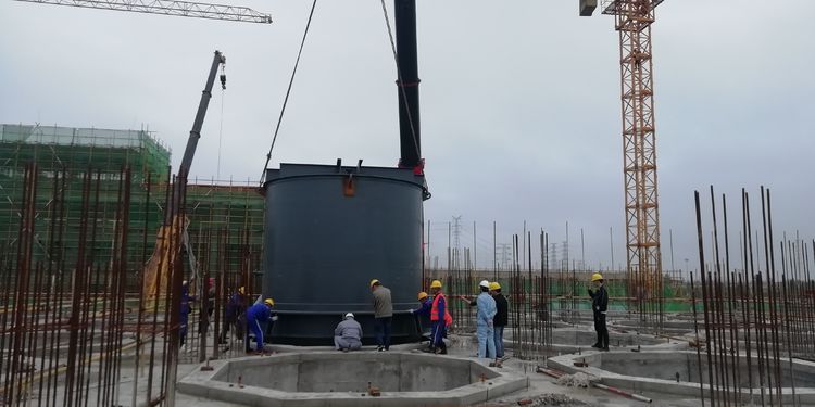 5月8日,隨著一號庫4個調混罐的開始吊裝,董家口項目進入設備安裝階段。