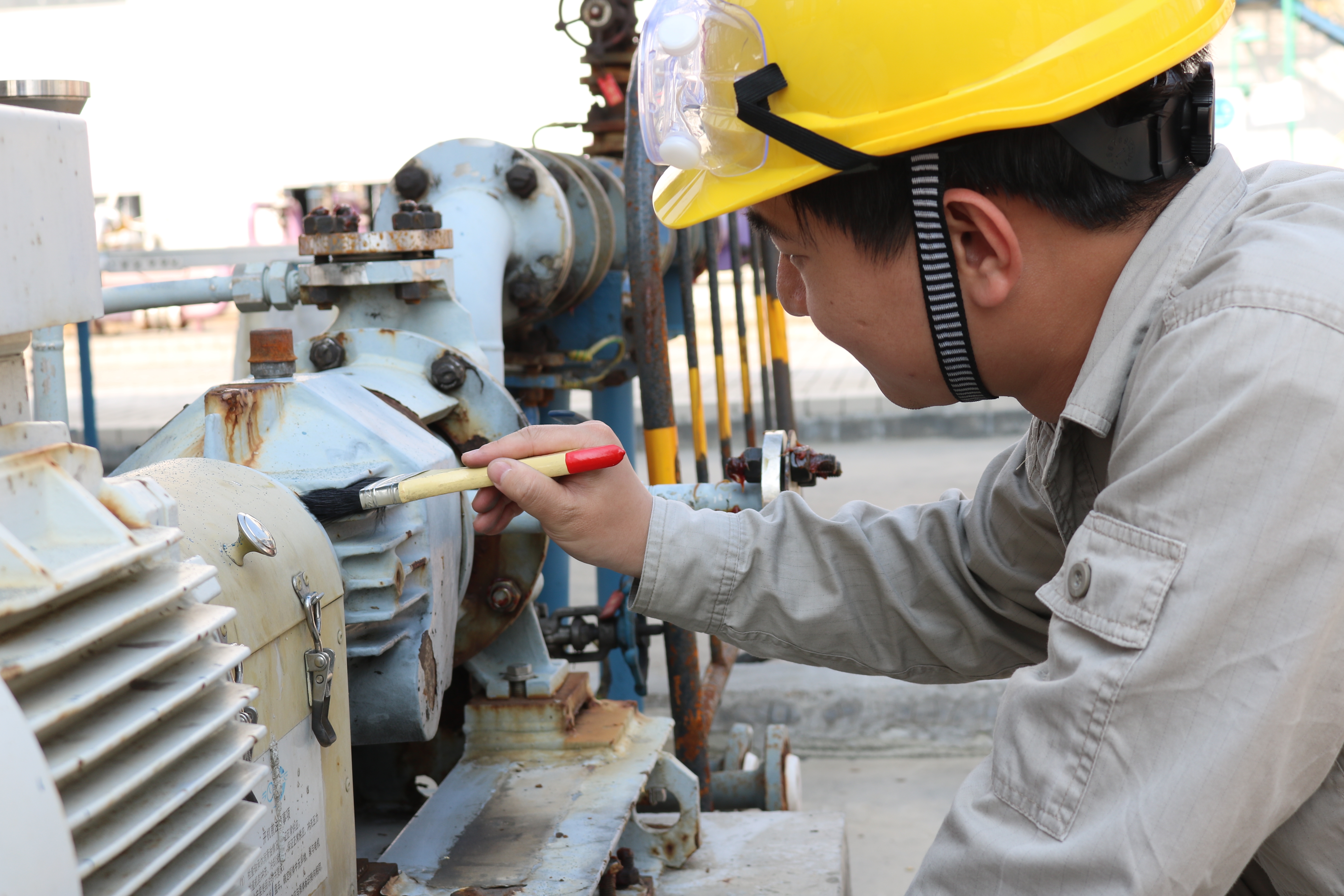 生產(chǎn)運(yùn)行一部?jī)?chǔ)運(yùn)車間主管陳奕良注意到現(xiàn)場(chǎng)機(jī)泵小縫隙存在污跡、油漬且較難清理,他嘗試將重油污清洗液、洗潔精和洗衣粉加水調(diào)和后,根據(jù)機(jī)泵縫隙大小搭配使用牙刷、毛刷、鋼刷,俯下身仔細(xì)清潔每一個(gè)小角落里的污漬,除油污效果明顯,于是他將這個(gè)方法從儲(chǔ)運(yùn)車間推廣到其他車間,廠區(qū)機(jī)泵煥然一新。